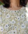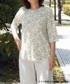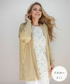 カーディガンはほんのり透けて、ちょうどいい肌見せ感。冷房対策や日焼け対策にも使えるアイテム。カットソーはフラワープリントを施し単品で着用しても高み見え◎