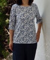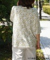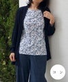 プリーツ加工を施したカーディガンにプリント半袖を組み合わせたアンサンブルです。