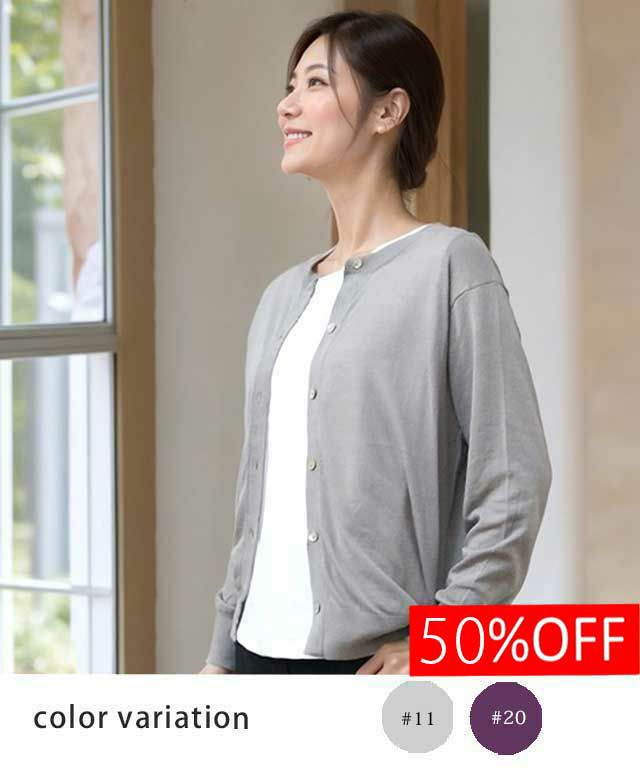 冷房対策にもオススメな、ドライタッチの丸襟カーディガンです。