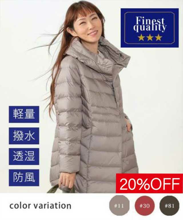 日本製撥水加工のソフト素材を使用したダウンコート。