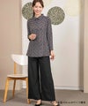 花柄でありながらシャープモチーフのため、大人の総柄プリントになっています。襟付きデザインで小顔効果も◎