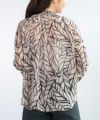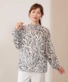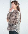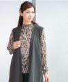 首元と手首のシャーリングがさり気ないアクセントになったブラウス。