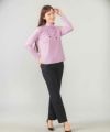 クシュクシュっとした衿元まわりがポイントで、首元が空いたアイテムを組み合わせれば華やかな印象に。