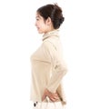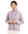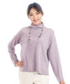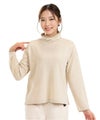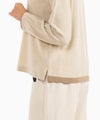衿元の配色ポイントをアクセントにしたシンプルなセーター。