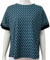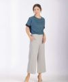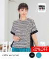 すっきりした幾何柄でおしゃれ感があり、細みのパンツ、ワイドパンツのどちらでも合う丈感となっています。