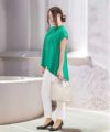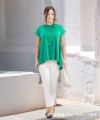前後で長さと幅が違う為、程よく身体から離れるAラインのシルエットがオトナ可愛さを演出してくれます。