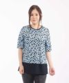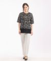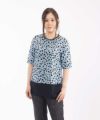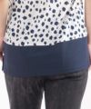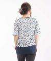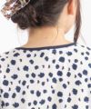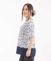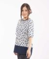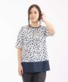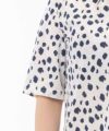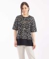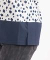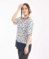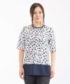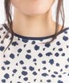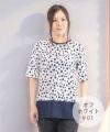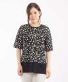 位置や大きさが不規則に配置されたドット柄と無地の生地で切り替えたカットソー。