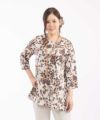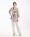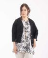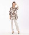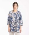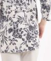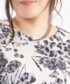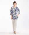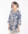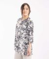 独特の風合いと清涼感のあるスラブ素材を使用し、逆影絵のような動きあるリーフ柄をプリントしています。