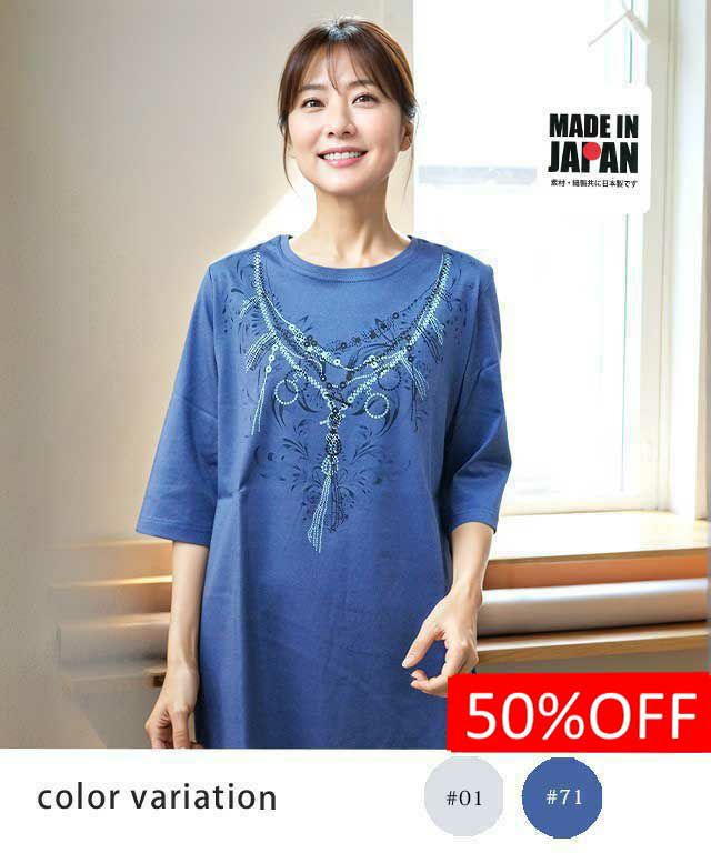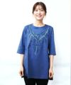 光沢のある顔料プリントを使用し、ネックレスのモチーフを前面に施しています。
