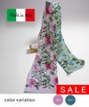 発色が良く華やかな雰囲気漂う花柄スカーフ。