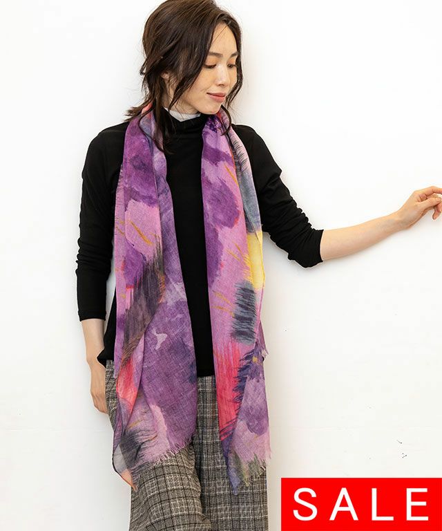 巻くだけでインパクトのあるライン花柄ストール。