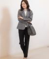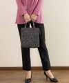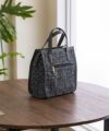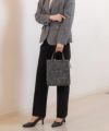 ツイードタッチとフェイクレザーのコンビが魅力♪ ツイード風手提げバッグ