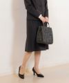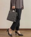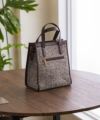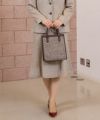 ツイードタッチとフェイクレザーのコンビが魅力の手提げバッグ。
