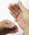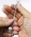 モチーフ部分を手で押さえながら引っ張ると長さの調節ができるので、左右非対称にしても◎。