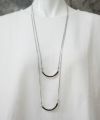 ロングの細みのネックレスを重ね付けしているかに見えるこのネックレス。