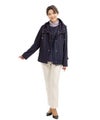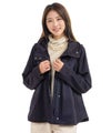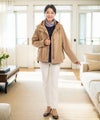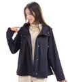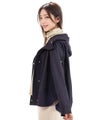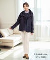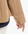 横から見ると後ろ下がりのカーブラインになってたり、背面のギャザーだったり、ポケット部分の配色が施されたりと、女性らしいポイントが散りばめられたジャケット。
