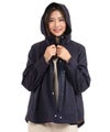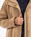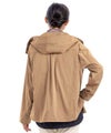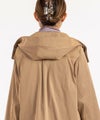 フードが広がりすぎないよう、後ろのドット釦で留めることでコンパクトに収まるのも嬉しいところですね♪