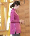 脇と袖口部分には配色ラインを施しポイントに。腰までカバーしてくれる着丈なので細身のパンツと好相性です。ワイドパンツやスカート合わせたゆるっとしたスタイリングも今年らしくておすすめ。