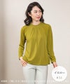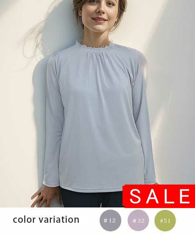 ・とろーり、ソフトなストレッチ素材 ・お顔周りにギャザーを施しているためお顔写りが華やかに !・滑りもよく重ね着しやすい・長い時期ご着用いただけるアイテム ************************************************** 伸縮性:あり 生地の厚さ:薄め 光沢感:なし 裏地:なし ***************************************************