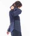 見た目はシンプルなショートポンチョ(ショートボレロ)ですが、ブラウスに合わせるだけで雰囲気をガラっと変えられます。
