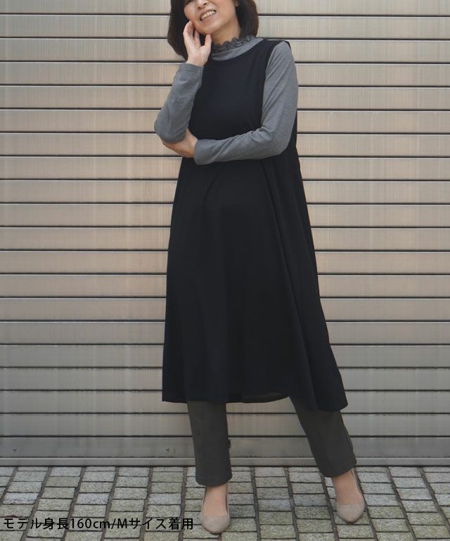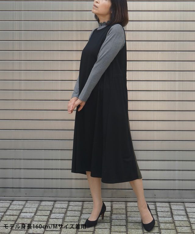 【洗える】異素材切替ワンピース