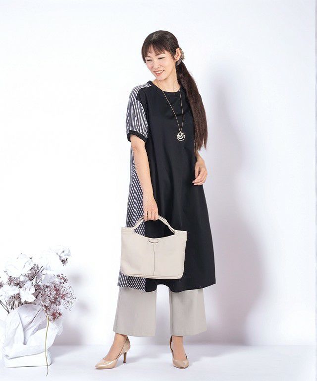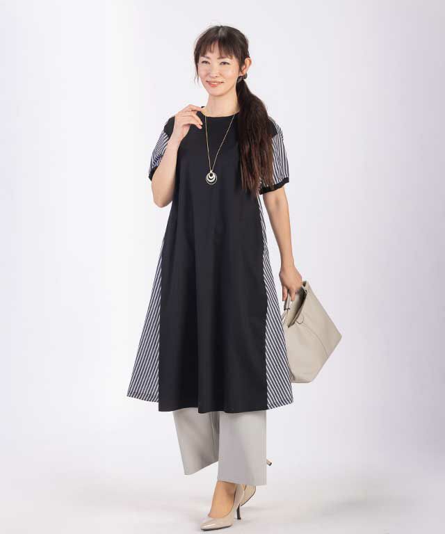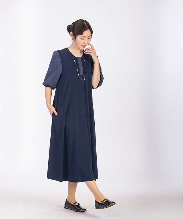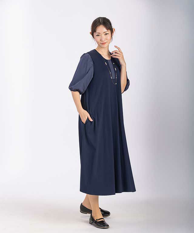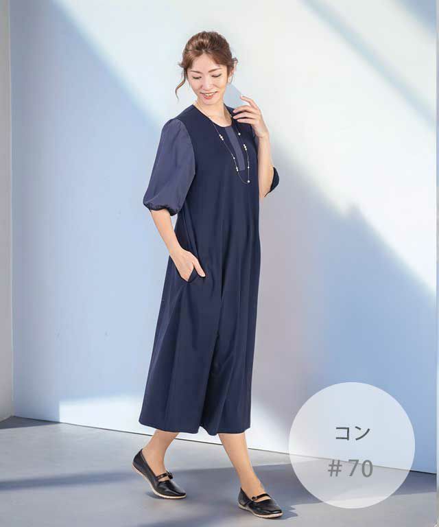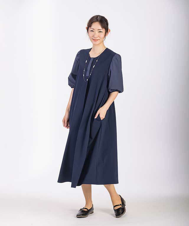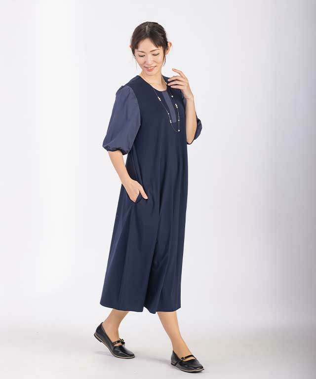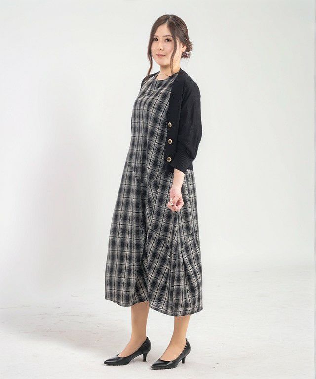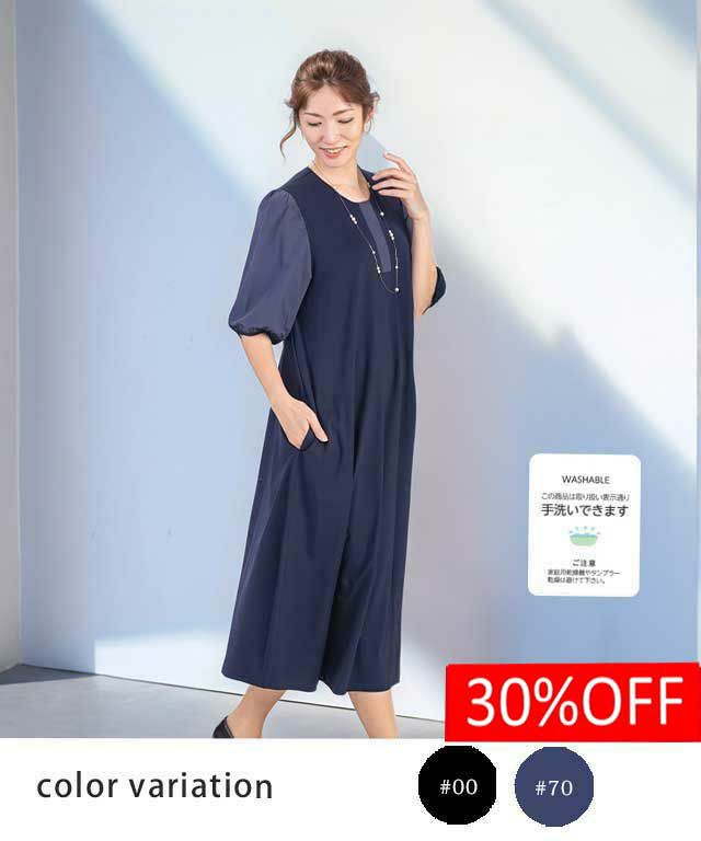 【洗える/日本製】バッグ配色切替ジャンパースカート