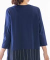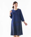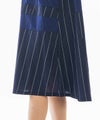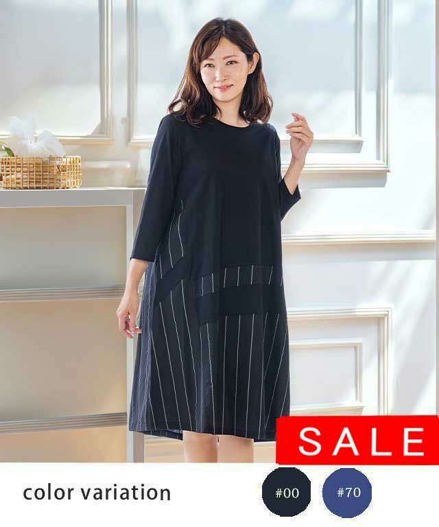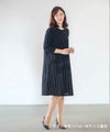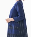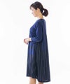 大胆なストライププリントが縦ラインを強調してすっきり見せ、モードな雰囲気に演出してくれます。