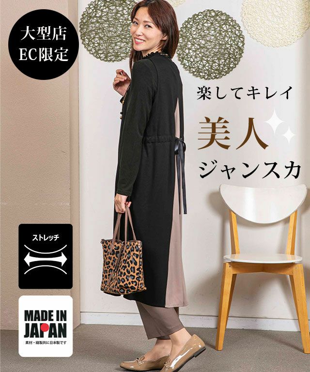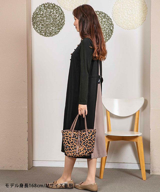 【洗える/日本製】バッグ配色切替ジャンパースカート