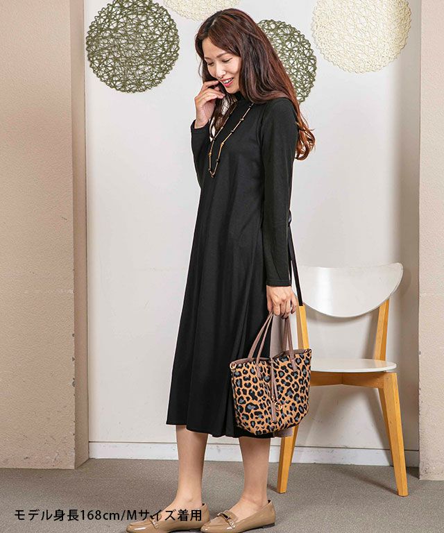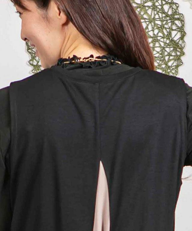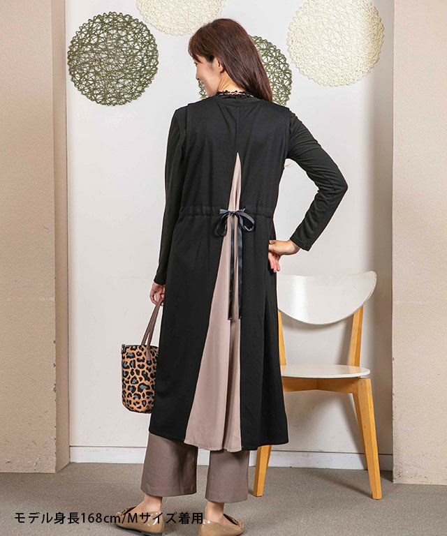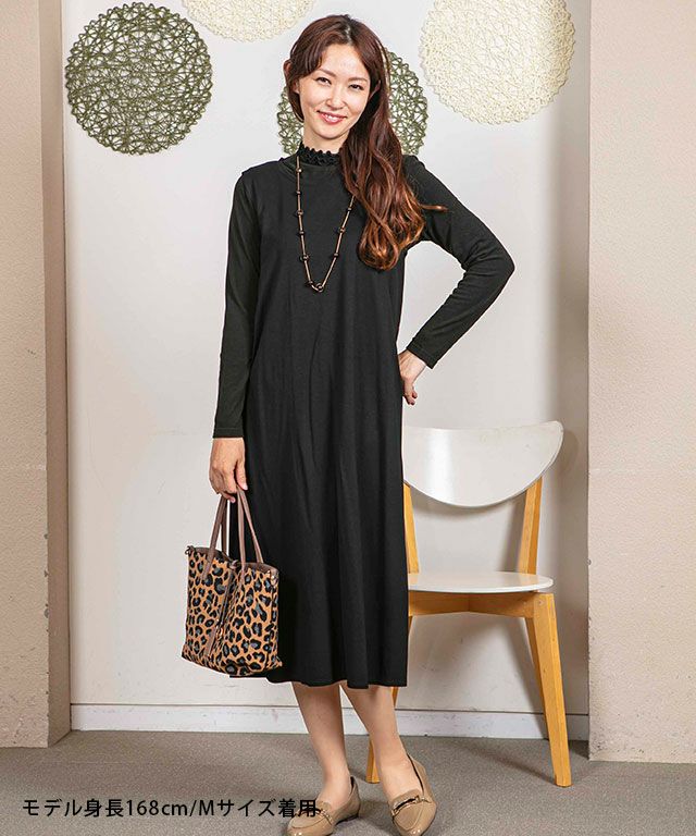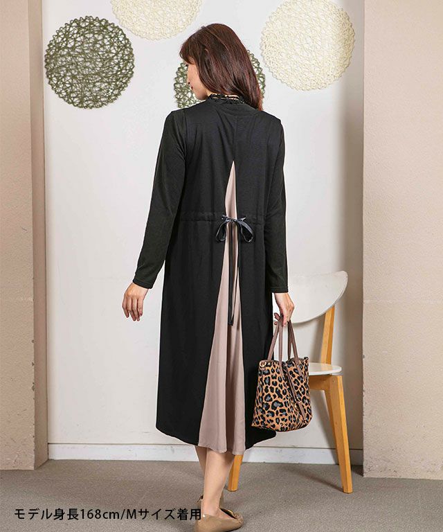 【洗える】異素材切替ワンピース