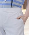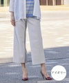 国内素材を採用。透けにくくドライタッチでさらっと穿けます。シンプルなデザインで合わせやすいセミワイドシルエット。美脚効果も高く、合わせるトップスを選ばない気回し力の高いパンツです。