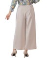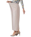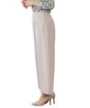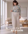 ウエストは全面ゴム仕様。お腹まわりをやさしく包み込み、食後や長時間の着用でも窮屈さを感じにくい設計です。ゴムでも見た目はすっきりしており、きちんとした印象を保ちます。
