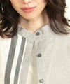 スタンドカラーがマニッシュなムード漂う、ふんわりシルエット。大胆な構造の先染めストライプ生地を使用し縦長を強調することでスタイルアップも叶えてくれます。