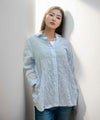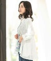 格子状のワッシャーシャツ角の末感のある素材を使用し、軽さのある羽織にぴったりなブラウスです。