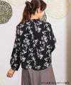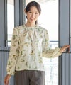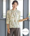 シャーリング花柄ブラウス。身幅がゆったりと広めな設計で体型カバーを叶えます