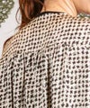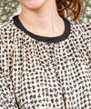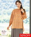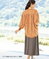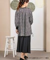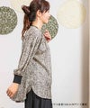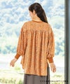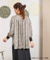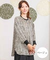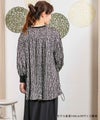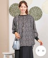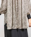 サテンプリントブラウス。ビッグシルエットですが落ち感の良い素材を使用し、アクセントにリブを施すことで膨張することなくスッキリと見せてくれます。