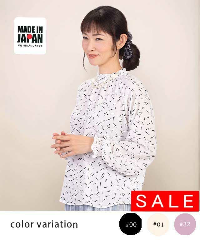 首元と手首の部分の細かなシャーリングが女性らしさを引き立ててくれます。