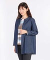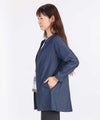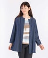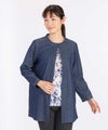 ダンガリー素材の羽織ジャケット。ロングブラウスとしてもコーディネートできる万能アイテムです。