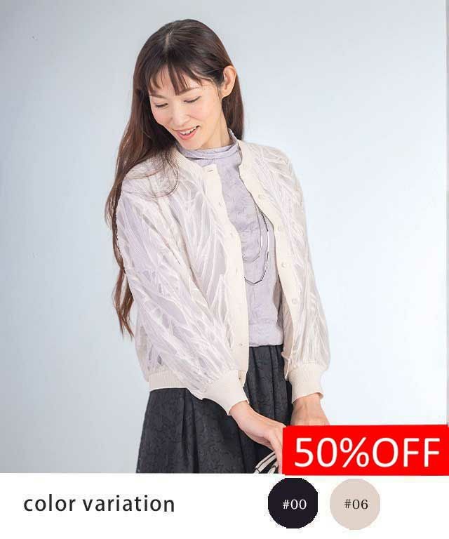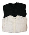 前立て・衿ぐり・袖口には異素材のリブ編みを組み合わせています。