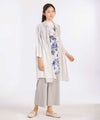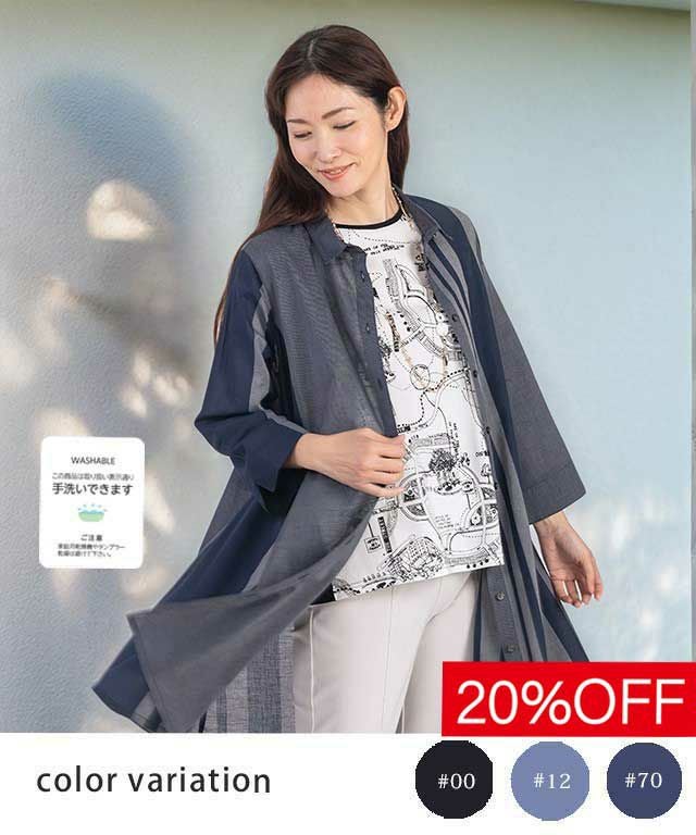 ランダムなストライプ柄がデザインポイントのロングプラウス。