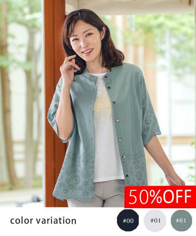 半円型が連続する「スカラップレース」が特徴のブラウスです。