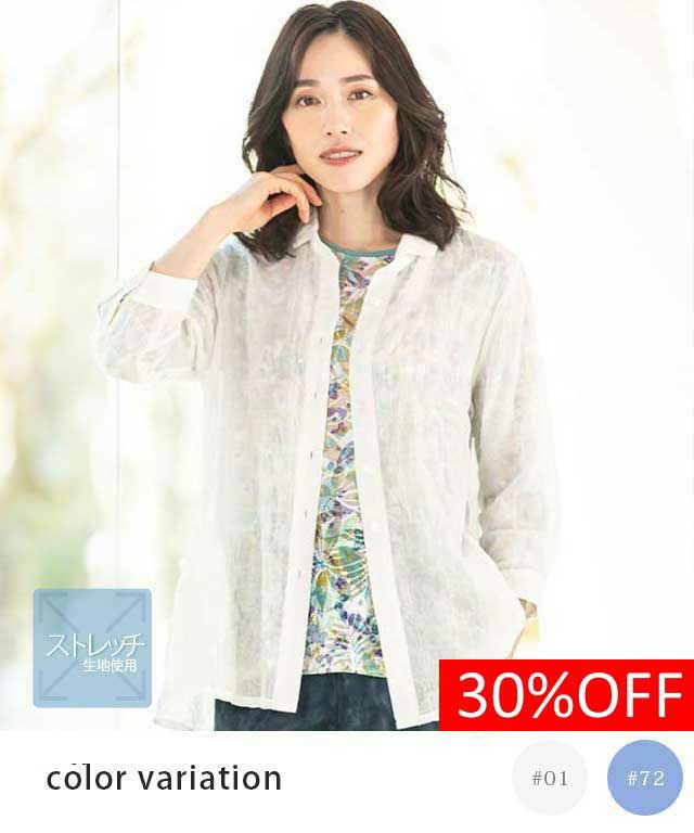 格子状のワッシャーシャツ角の末感のある素材を使用し、軽さのある羽織にぴったりなブラウスです。