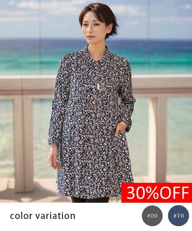 着るだけで体型カバーが叶うチュニック丈のブラウスです。ゆったりとしたシルエットで、気負わずデイリーに着られる1枚。
